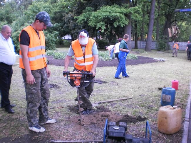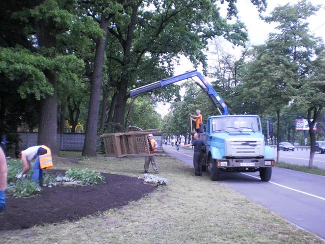 Крім виконання щоденних виробничих завдань, Комунальне підприємство по утриманню зелених насаджень, на даний час, проводить оновлення скверу, який знаходиться на розі проспекту Перемоги та вулиці Крамського.