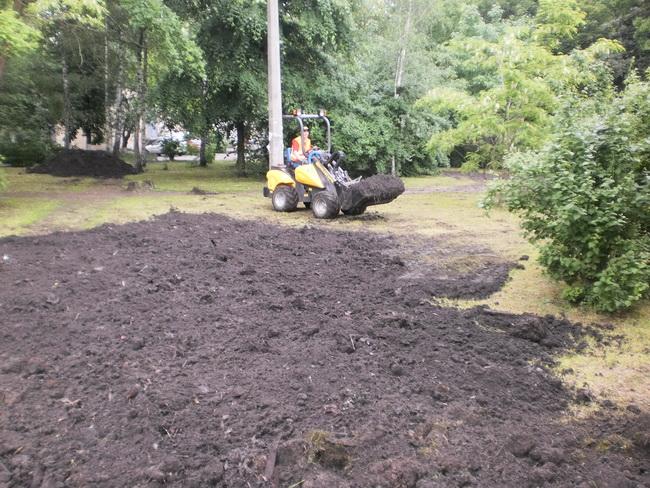 Для відновлення газону на площі дві тисячі метрів квадратних на початку тижня було завезено та розплановано сорок тонн родючого ґрунту.