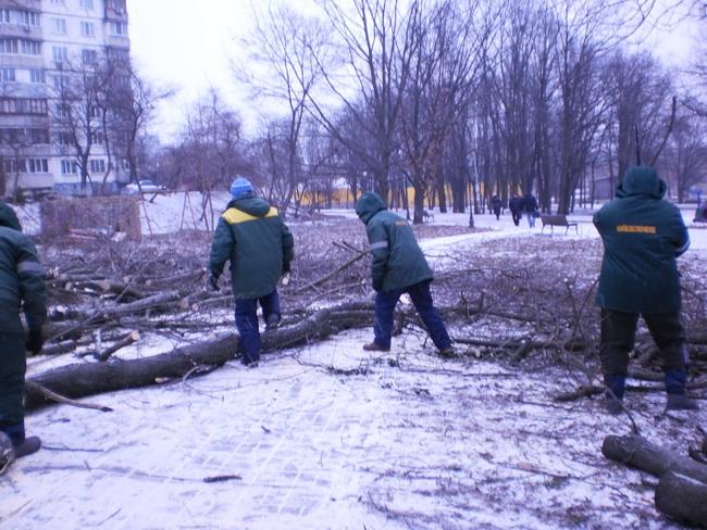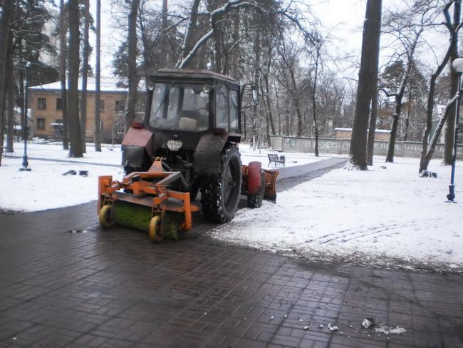 В парках: «Інтернаціональний», «Совки», «Юність», імені Генерала Потапова та на вулиці Ф. Пушиної, в скверах на вулицях Котельникова, 26-32, Верховинна, 8-10, по проспекту Перемоги, 97, вулиці Прилужній (біля школи № 304), між вулицею Семашка та проспектом Палладіна, між вулицями Краснова і Семашка та вздовж бульвару Вернадського проведено чищення пішохідних доріжок від снігу, змітання снігу з лав та посипання доріжок піщано-сольовою сумішшю. Для цього підприємство задіяло 4 одиниці снігоприбиральної техніки та 45 працівників.