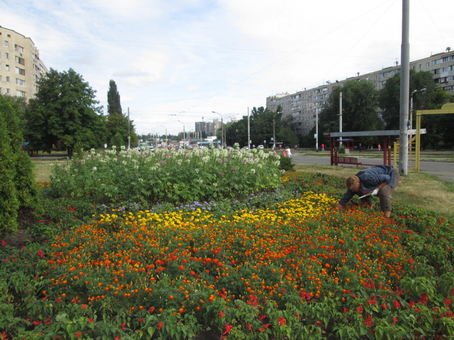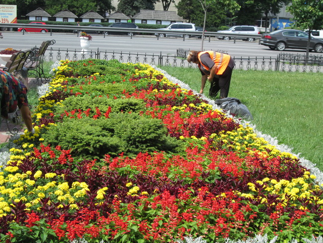 В літні місяці одним із основних видів робіт озеленювачів комунального підприємства по утриманню зелених насаджень Святошинського району є догляд за висадженими квітами. Зазвичай, невтомні працівники зеленого господарства сумлінно проводять прополювання клумб та обрізку квітів, які вже перецвіли. А після поливу, який в спекотний період проводиться пізно ввечері та рано вранці, обов’язково розпушують землю навколо рослинок, щоб вони «дихали».