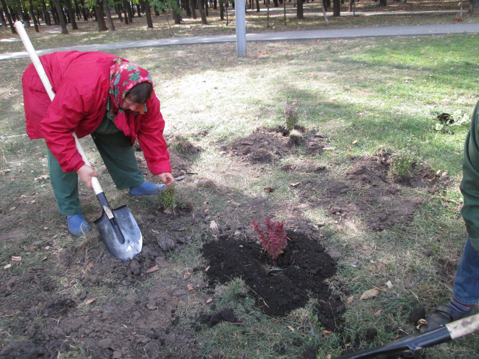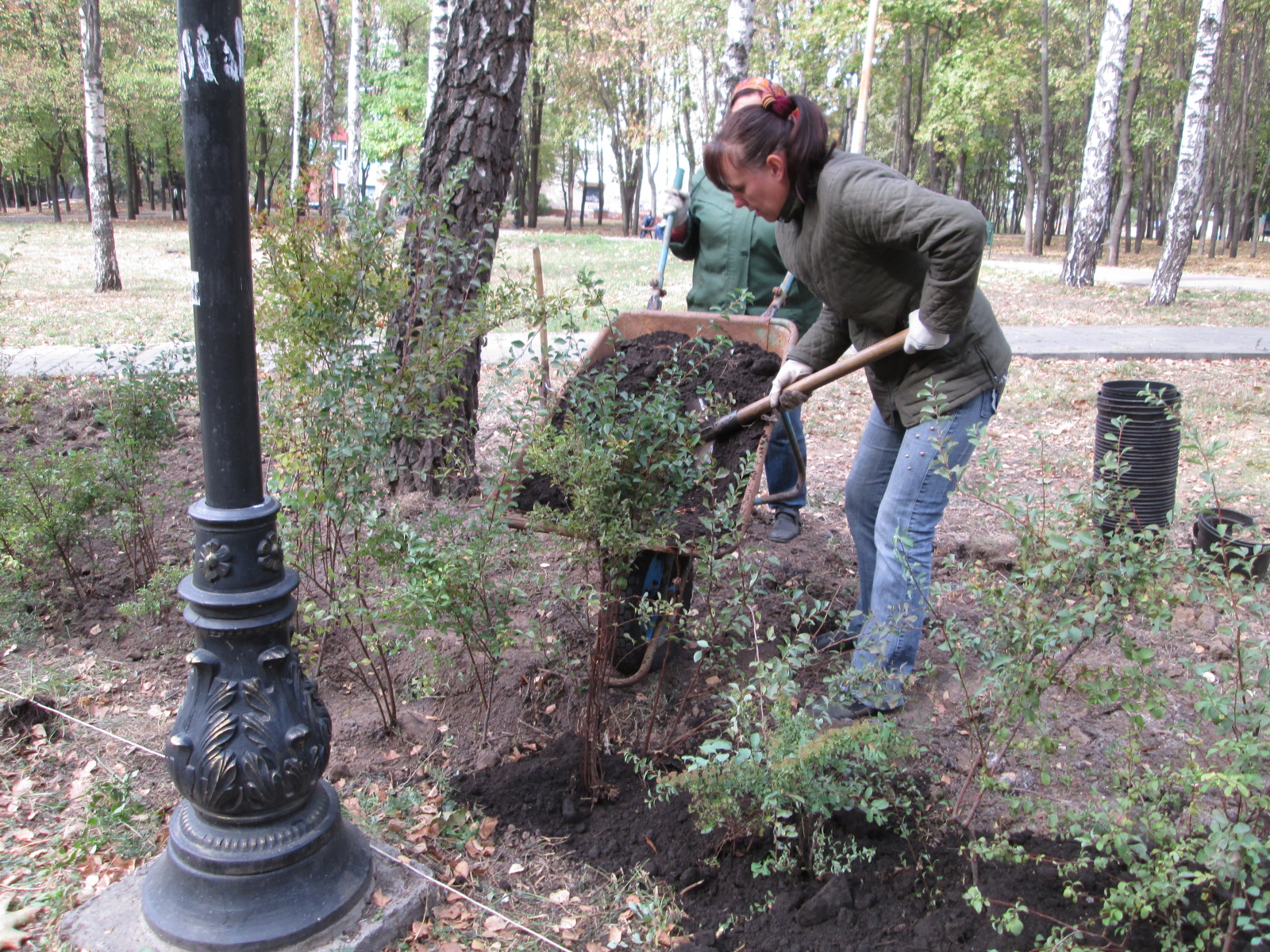 В погожі осінні дні працівники комунального підприємства «По утриманню зелених насаджень Святошинського району» продовжують висаджувати декоративні кущі на балансових територіях підприємства. Щоб парки, сквери та бульвари були ще зеленішими та привабливішими озеленювачі з декоративних кущів створюють живі огорожі, а також висаджують їх групами.