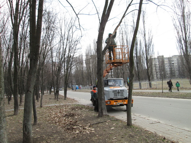 Щоб наші зелені друзі приносили мешканцям столиці тільки задоволення та користь і не завдали шкоди здоров’ю та майну, крім постійного догляду за деревами, працівники комунального підприємства по утриманню зелених насаджень Святошинського району проводять постійне обстеження та необхідне видалення сухостійних та аварійних дерев, а також обрізку сухого гілля.