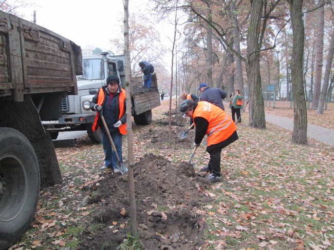 Києву зеленим бути! Саме з таким твердженням, погожими осінніми днями, працівники комунального підприємства «По утриманню зелених насаджень Святошинського району» продовжують озеленювати свої балансові території.