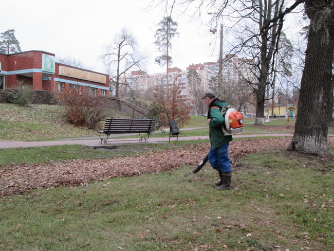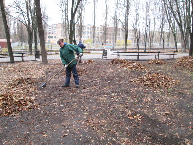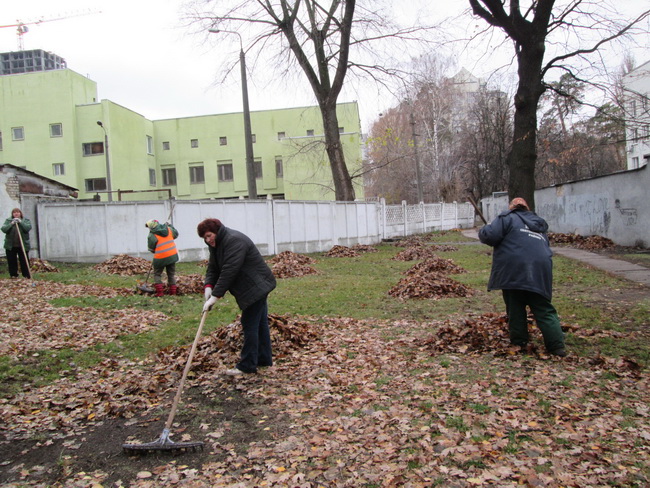 Кожного дня працівники комунального підприємства по утриманню зелених насаджень Святошинського району піклуються про комфорт киян та чистоту столиці і плідно працюють на своїх балансових територіях. Щоденно ретельно прибирають зелені зони від випадкового сміття, звільняють дерева та електроопори від несанкціонованих реклам, очищають урни від сміття та підмітають доріжки, а також в ці осінні дні очищають балансові території від опалого листя.