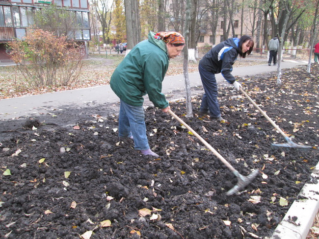 Працівники комунального підприємства «По утриманню зелених насаджень Святошинського району» прагнуть, щоб газони на балансових територіях розкидались зеленими килима і тому там, де виникає потреба, постійно їх відновлюють.