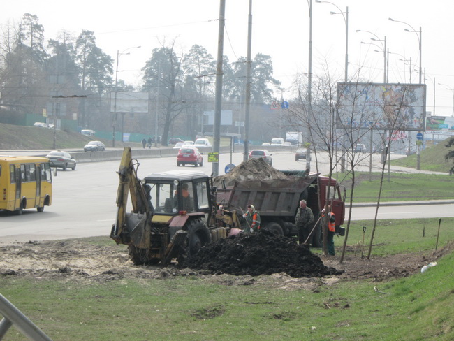 Нещодавно, після ліквідації незаконних МАФів на транспортній розв’язці на перехресті Кільцевої дороги та проспекту Перемоги, працівники комунального підприємства по утриманню зелених насаджень Святошинського району прибрали сміття, вивезли пісок з дрібним камінням, завезли 20 тонн родючого грунту та відновили газон.