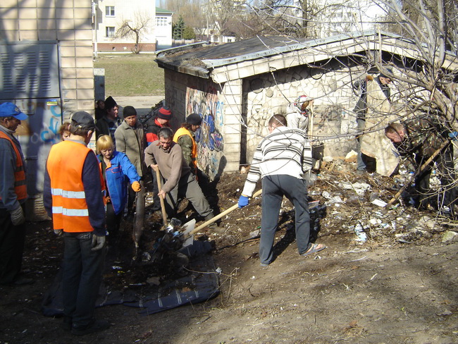 Робітники прибирали територію, підчищали дерева приводили у належний стан тротуари та майданчики. Робота кипіла працювали всі з натхненням, бо чистота наших душ, нашого життя починається з чистоти нашої оселі, нашого подвір’я.