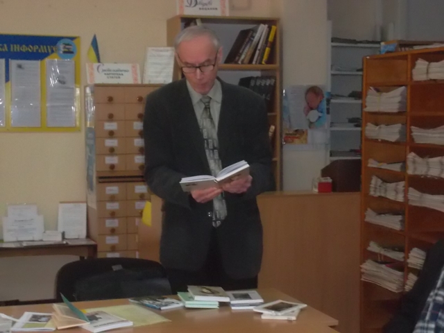 Поспілкуватись з відомим українським поетом, журналістом, перекладачем, Головою творчого об’єднання поетів київської організації Національної спілки письменників України, членом Національних спілок журналістів та кінематографістів, автором та ведучим передач Національної радіокомпанії України, заслуженим діячем мистецтв України, заслуженим діячем польської культури завітали читачі бібліотеки, попечитель Наглядової ради бібліотеки Бабаджанов Нурі Джумаєвич та поетеса Лілія Завойська.