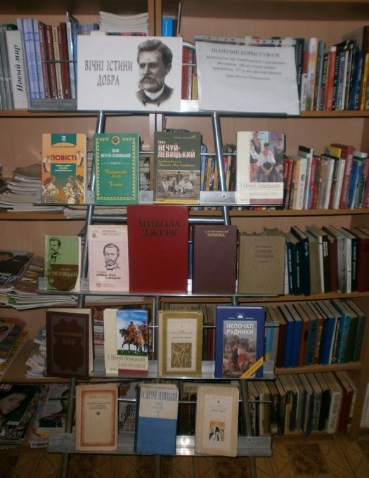До 175 - річчя від дня народження Івана Нечуя-Левицького у бібліотеці ім. О.Герцена розгорнуто книжкову виставку «Вічні істини добра», на якій представлені твори письменника - гумор великого майстра з його багатобарвними відтінками - від світлого, життєрадісного сміху до сумно-іронічної посмішки і сатиричного шаржу або прямої карикатури. Серед матеріалів книжкової виставки – спогади про письменника, зібрані Марією Грінченковою та інтернет-матеріали з експозиції музею міста Стеблів – батьківщини І.С.Нечуя-Левицького.