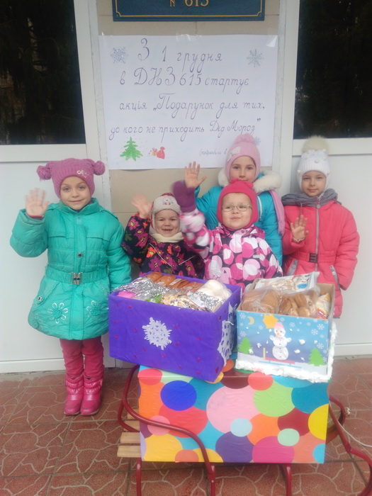 Напередодні Нового Року та Різдва – найвеселіших та найщасливіших сімейних свят, всі шукають подарунки та роблять покупки до новорічного столую. Але, на превеликий жаль, так не у всіх… В мікрорайоні Новобіличі є чимало самотніх довгожителів, до яких на Новий рік ніхто не завітає (окрім соціальних працівників). Тому працівники, батьки та діти ДЗН № 615 вирішили влаштувати акцію під назвою «Подарунок для тих, до кого не приходить Дід Мороз». Акція проходила з 1 по 29 грудня і основним її гаслом став заклик не забувати, що є одинокі бабусі та дідусі, яким не вистачає уваги та турботи.