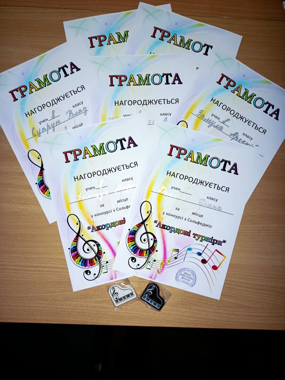 Від організаторки конкурсу Лілії Горобець діти отримали грамоти, приємні музичні дрібнички та зошит-тренажер для розвитку музичного слуху!