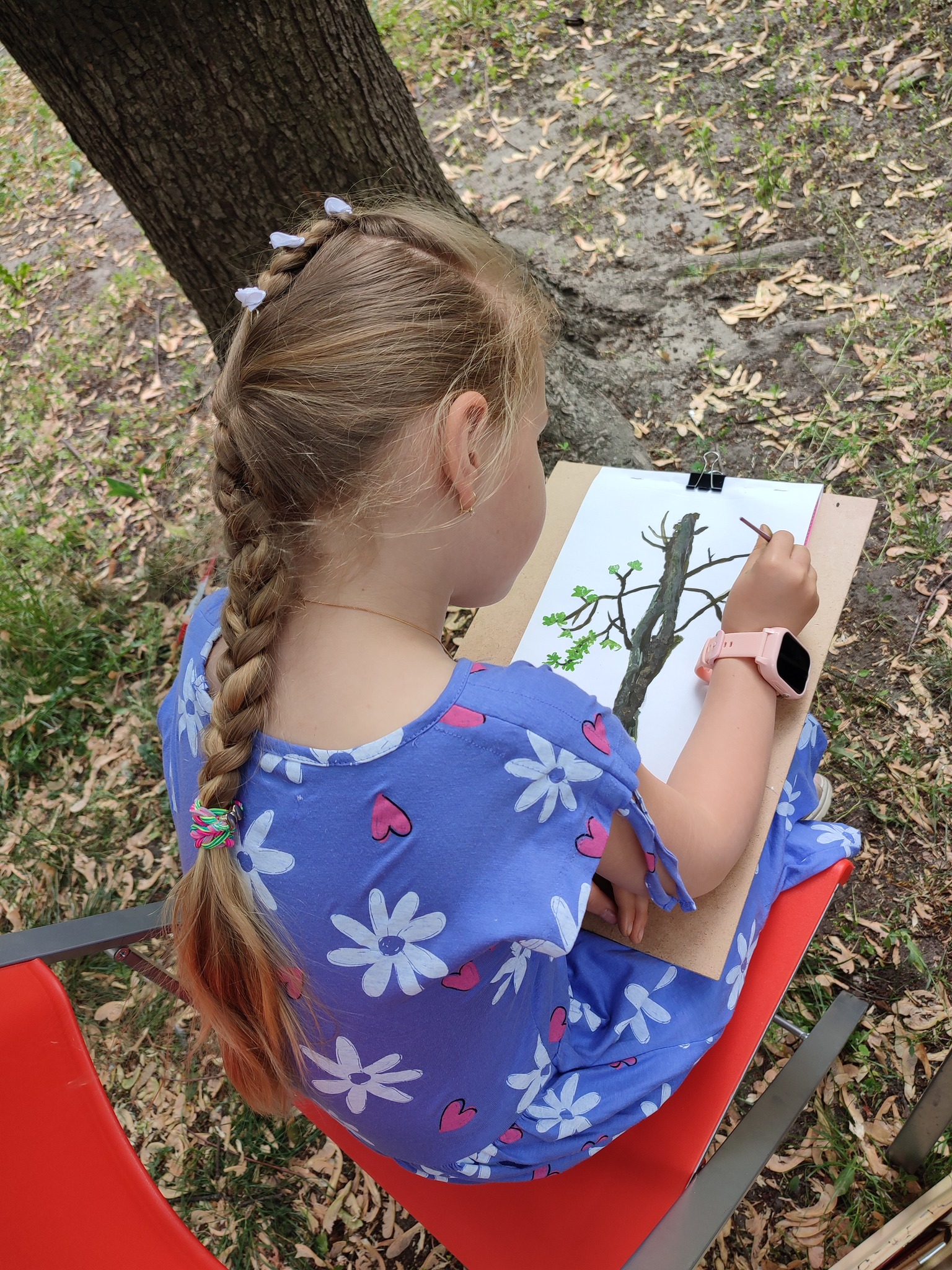 З початком літа, як і заведено у справжніх художників, розпочались пленер. Озброєні фарбами, пензлями, аркушами паперу та знаннями про пленерний живопис, який позначає передачу в картині всього багатства змін кольору, зумовлених дією сонячного світла й атмосфери, гуртківці малювали акварельний етюд.