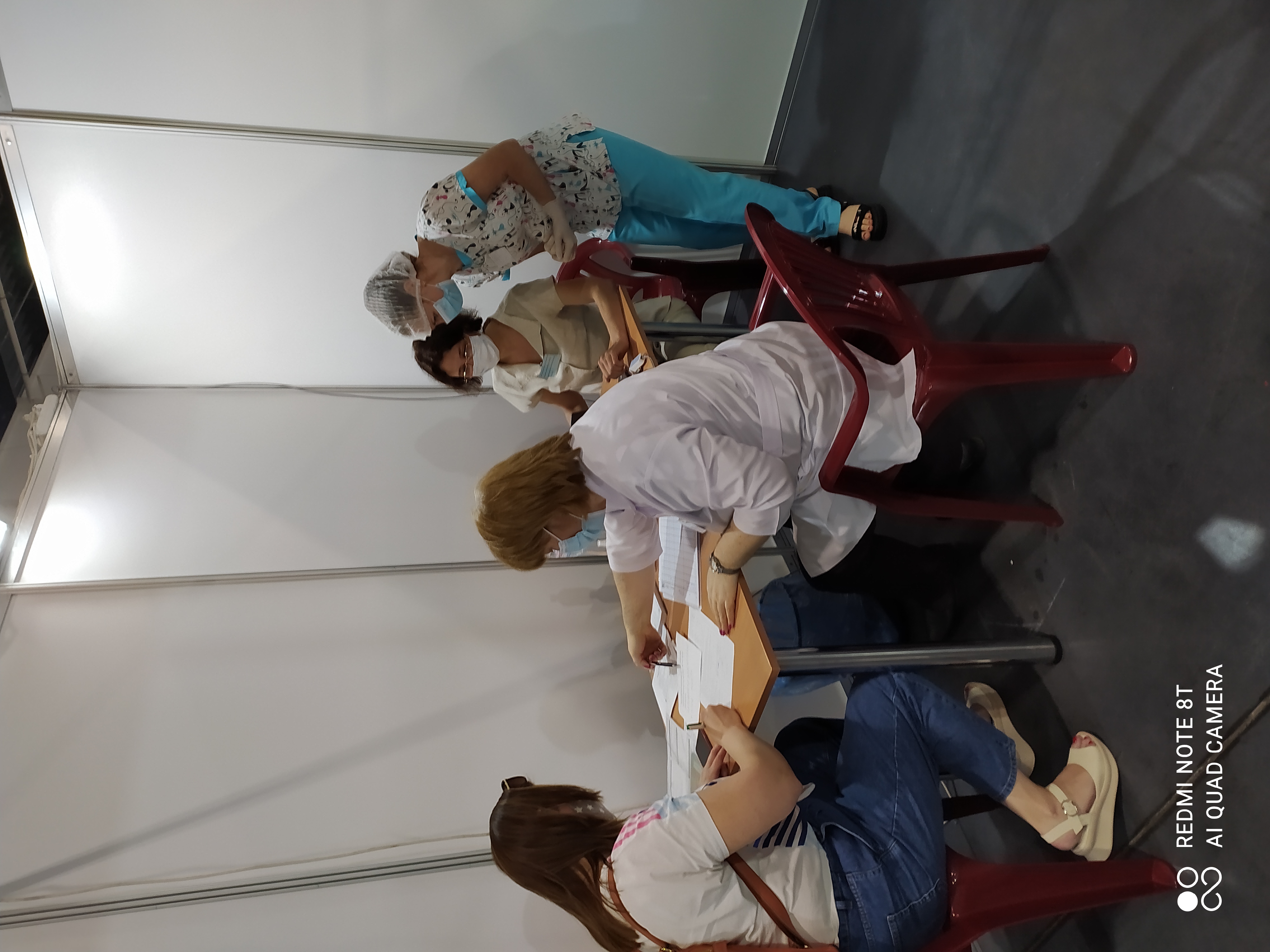 Медичні працівники центрів первинної медико-санітарної допомоги № 1, № 2, № 3 та консультативно-діагностичного центру Святошинського району м. Києва цими вихідними (05 та 06 червня) взяли участь у роботі міського центру вакцинації населення від COVID-19 на Броварському проспекті (далі – Центр).