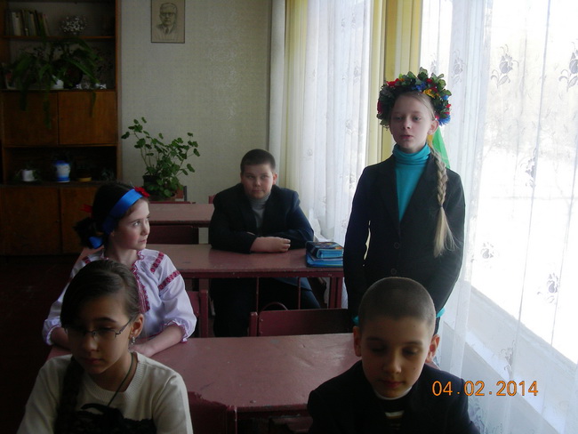 Цікавою в цьому плані виявилась і літературна година «Іду з дитинства до Тараса» в 4-Б класі. Метою заходу було продовжувати знайомити учнів з життям та творчістю видатного сина українського народу Т.Г. Шевченка; розвивати здібності у декламуванні віршів; показати школярам мелодійність лірики Тараса Шевченка, виховувати любов і повагу до українського слова, до творчості Кобзаря.