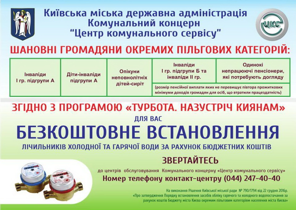 Міська програма безкоштовного встановлення квартирних лічильників на воду соціально незахищеним громадянам