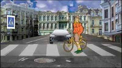 Велосипедист перед переходом має спішитися та перейти дорогу як пішохід.