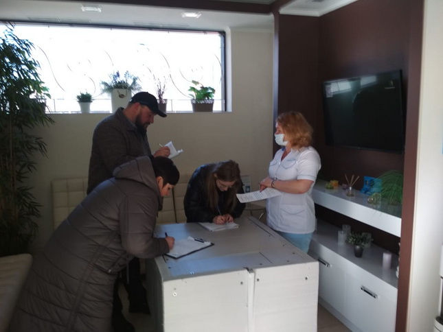 Робочою групою 30 березня проведено інформаційно-роз’яснювальну роботу з 6 суб’єктами господарювання, які здійснюють свою діяльність на просп. Берестейський, 136 щодо безпечності та якості харчових продуктів тваринного і рослинного походження, вимог законодавства про працю, охорону праці, гігієну праці, медичні огляди, зокрема працівників, зайнятих на роботах iз шкідливими та небезпечними умовами праці, забезпечення працівників засобами індивідуального та колективного захисту, виробництва, зберігання, використання отруйних речовин у виробничих процесах, у тому числі продуктів біотехнологій та інших біологічних агентів; організації проведення навчання та перевірки знань з питань охорони праці.