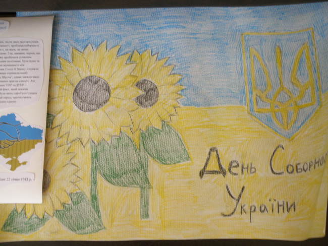 «Моя Україна - ти в світі єдина»: В СШ №304 проведено виставку малюнків до Дня соборності та та Свободи України (фото)