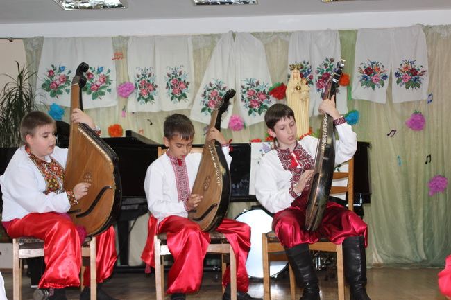 Ансамбль народних інструментів (викладачі Нільська Олена та Макарова Ольга) виконав «Гей, соколи» Томаша Падури. Стрілецька пісня «Повіяв вітер степовий» та «Молитва» Михайла Гайворонського прозвучали у виконанні вокального ансамблю «Ангельорус». Випускниця школи Ангеліна Власенко подарувала слухачам українську народну пісню в обробці Бориса Лятошинського «Ой у полі тихий вітер віє».