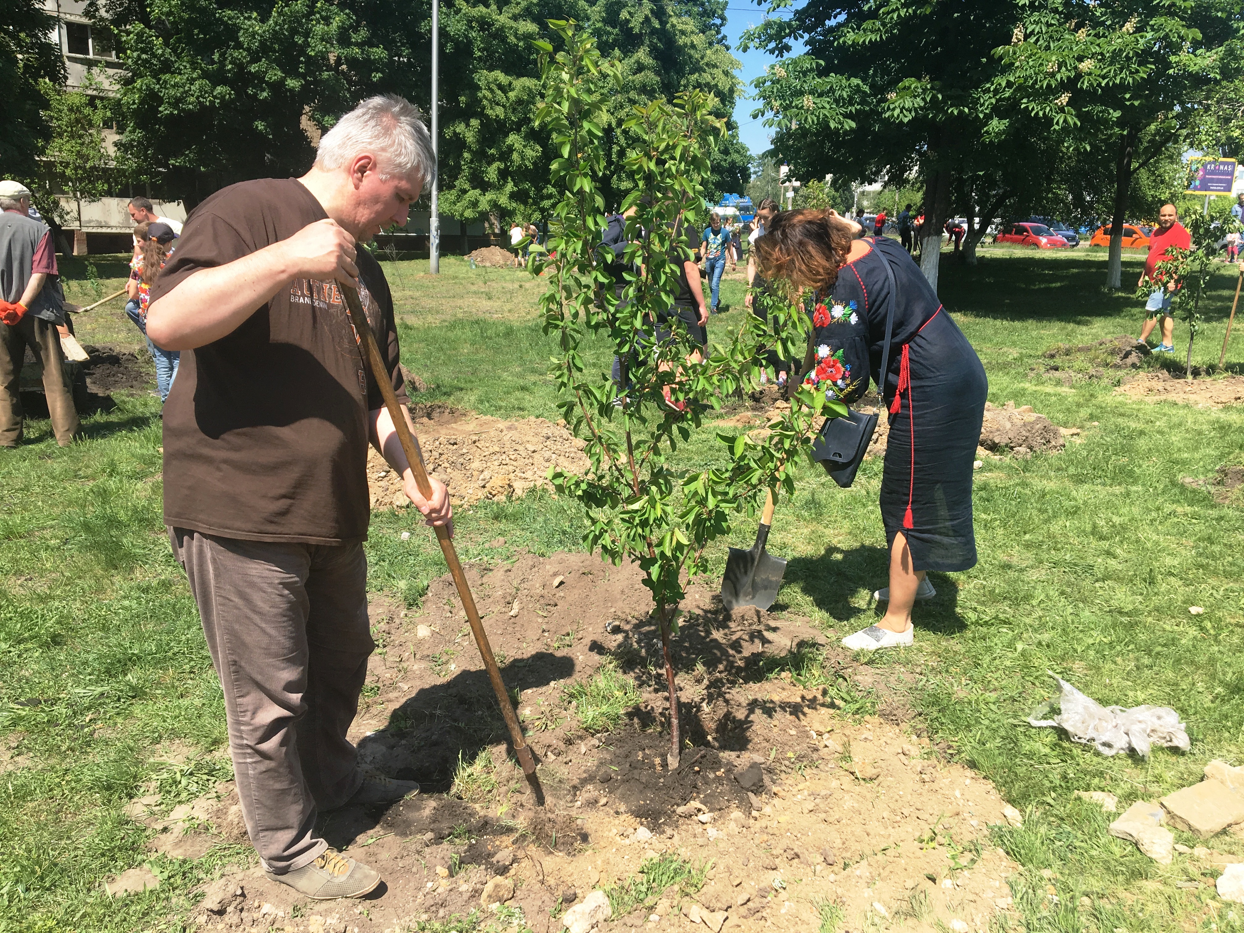 171 рік тому саме в ці травневі дні видатний український письменник Т.Г. Шевченко написав вірш «Садок вишневий коло хати». Святошинські школярі, учні ЗЗСО № 297, та місцеві мешканці вирішили на місці звалища, облаштувати вишневий садок.