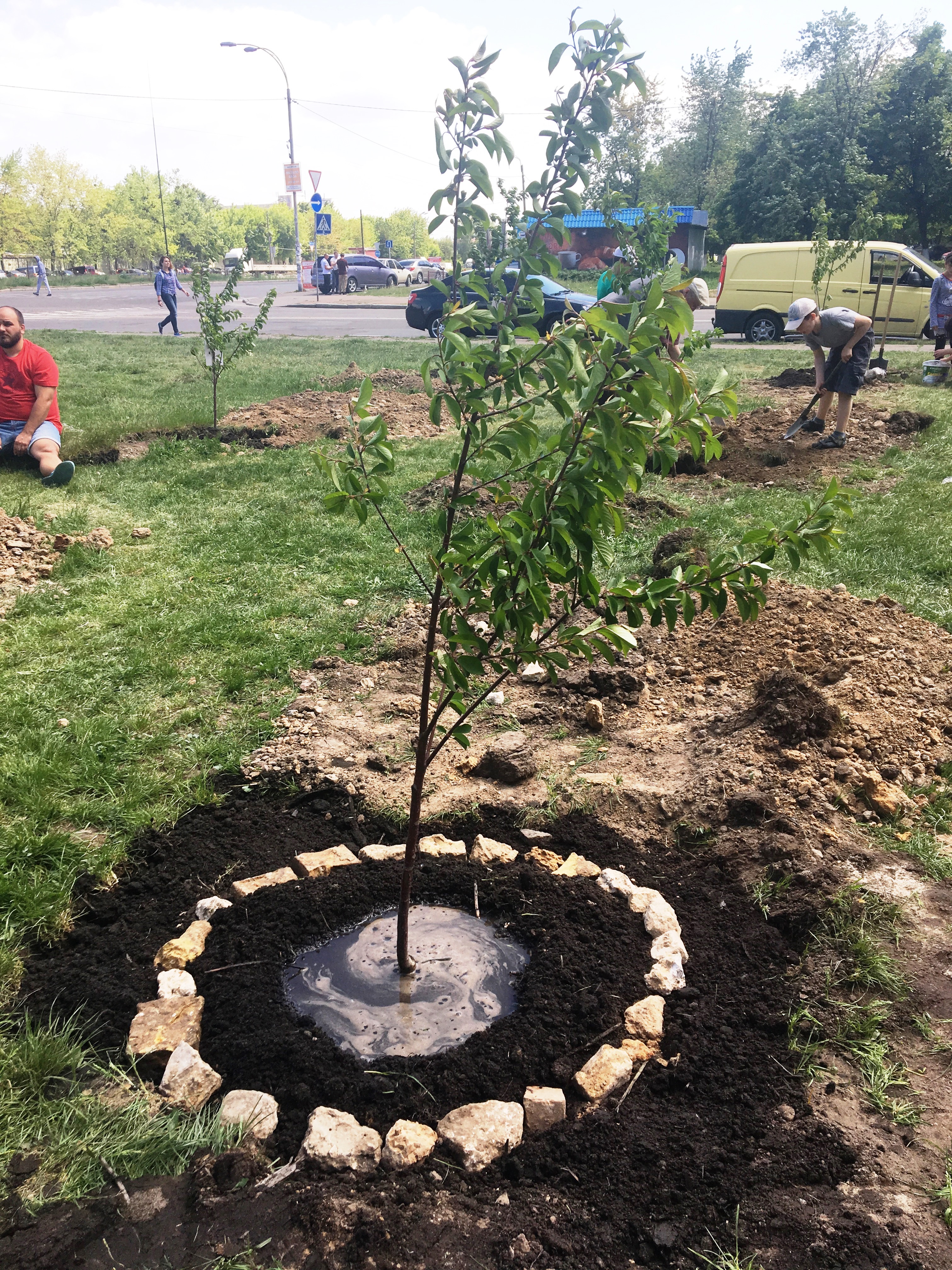 Було висаджено понад 30 вишень, за кожним деревом закріплено родину, що мешкає в будинку поруч, або шкільний клас. На думку організаторів, саме така особиста приналежність стане запорукою ретельного догляду за саджанцями і збереже їх від можливого вандалізму.