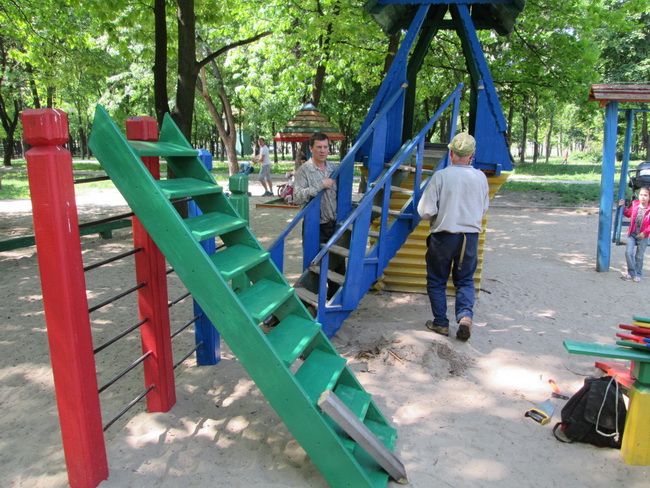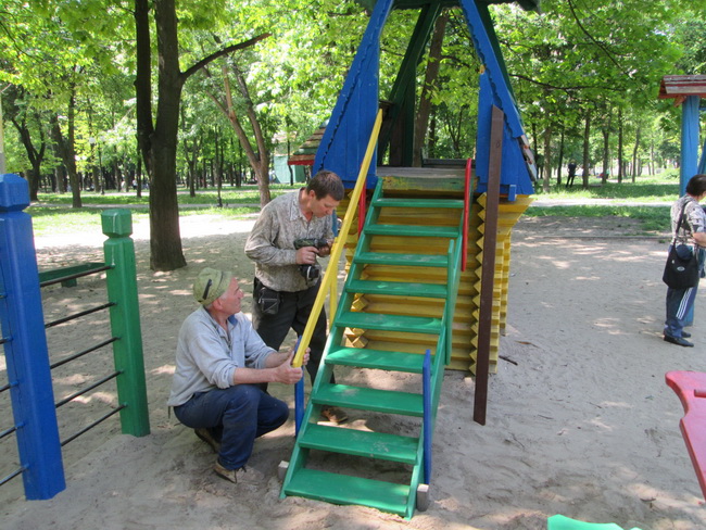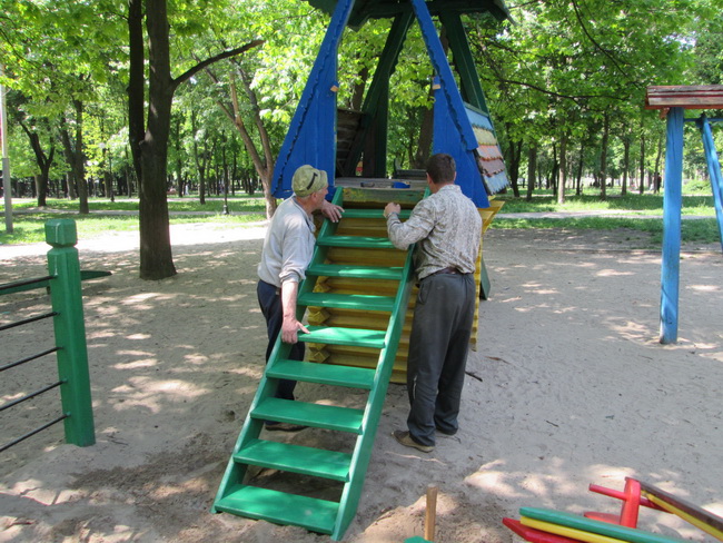 Виявлені ушкодження елементів майданчика в парку «Інтернаціональний» працівники ремонтної дільниці № 4 оперативно відремонтували, а також виготовили та замінили дерев’яну драбинку, адже в тої, що була, пошкодились поручні та сходинки.