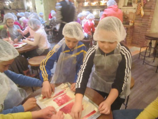 Разом із вчителями вони побачили всі етапи виробництва хліба: від перемелювання зерна на борошно, до замішування тіста та упаковки рум'яного запашного хліба прямо з печі згідно з новітніми технологіями упаковки хлібобулочних і кондитерських виробів, після чого спробували власні сили в хлібопекарському мистецтві - випікали власноруч виготовлені коржики у казково оформленій пекарні. Після випікання солодощів дітвора скуштувала свої «шедеври» разом з чаєм.