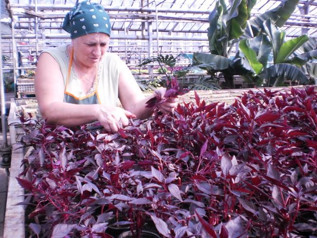 Вмілими руками тепличниць вже заживцьовано ірезіне, проведена посадка укорінених черенків, виконано прищипку більш ніж трьох тисяч рослинок сальвії.