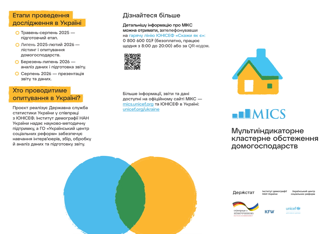 В Україні триває польовий етап Мультиіндикаторного кластерного обстеження домогосподарств (МІКС), у межах якого інтерв’юери безпосередньо опитують населення у відібраних домогосподарствах по всій країні. Обстеження охоплює понад 24 тисячі родин (за винятком тимчасово окупованих і небезпечних територій) та триватиме до кінця лютого 2026 року.