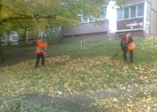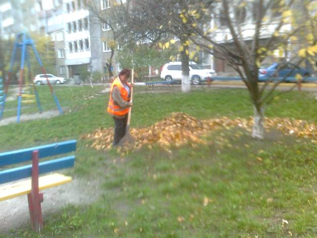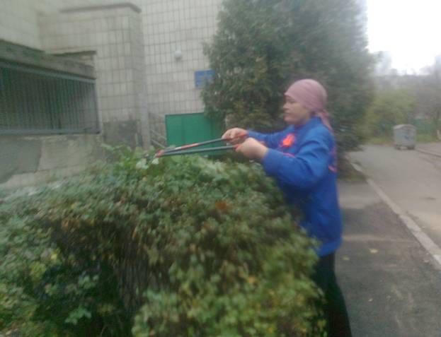 Щоб забезпечити охайний стан дворів, особливо в осінню пору працівниками технічних дільниць ТОВ «Святошинжитлосвіт», щоденно, майже на протязі всього дня виконується прибирання території від опалого листя, приведення газонів , клумб та кущів до належного санітарного стану.