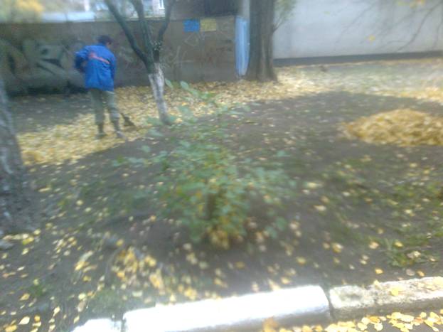 Та серед усього розмаїття осінньої краси не залишається непоміченою праця двірників, яким щоденно доводиться прибирати цю танцюючу красу, щоб наші двори не перетворювалися в смітники з висохлого листя.