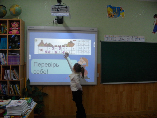 Використання інтерактивної дошки під час проведення уроків дає можливість учням швидко сприймати інформацію, знижує тривожність учнів при роботі біля дошки, стимулює школярів до колективного вирішення навчальних проблем.