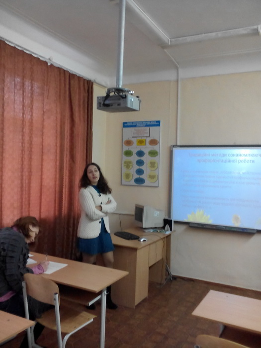 Під час ради виступила методист з профорієнтації Кравченко Ю.А. з презентацією на тему: «Майстер-клас як інноваційний метод профорієнтаційної роботи» налаштовуючи педагогічний колектив до творчої ідеї проведення майстер класів в МНВК. І кращим стимулом для цього має стати взаємообмін професійним досвідом у вигляді інноваційного уроку-майстер-класу.