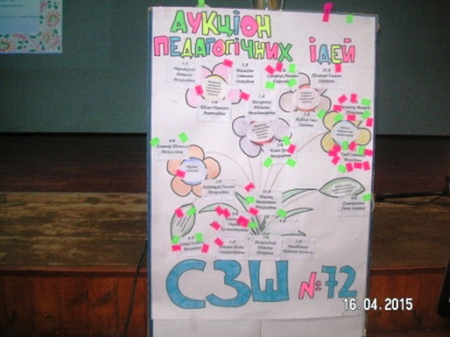 23 квітня 2015 року в середній загальній школі № 72 Святошинського району відбулася педагогічна рада – аукціон ідей на тему: «Удосконалення процесу виховання учнів за допомогою моделювання й побудови виховних систем класів».