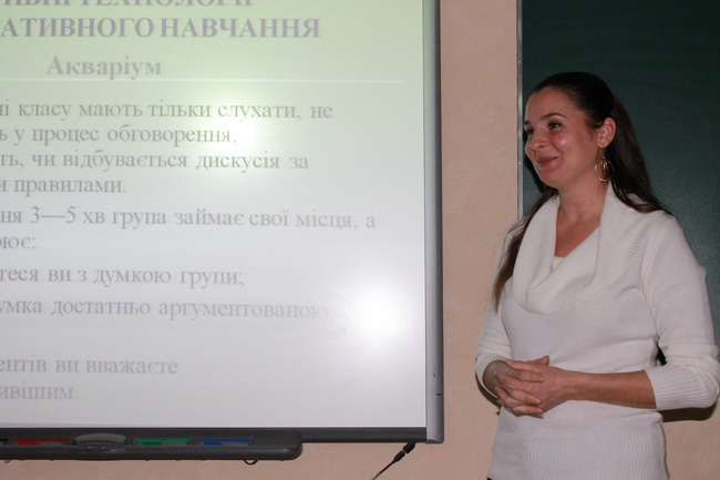 Вчителі ділилися досвідом використання інтерактивних технологій під час проведення групових занять з англійської мови, з математика в процесі підготовки до ДПА та ЗНО, з математики в початковій школі, на факультативних заняттях.