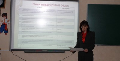 Директор школи Жук Л.В. зробила акцент на тому, що потрібно активно використовувати інтерактивні технології та комп’ютерні мережі у роботі курсів за вибором, факультативів, групових та додаткових занять.