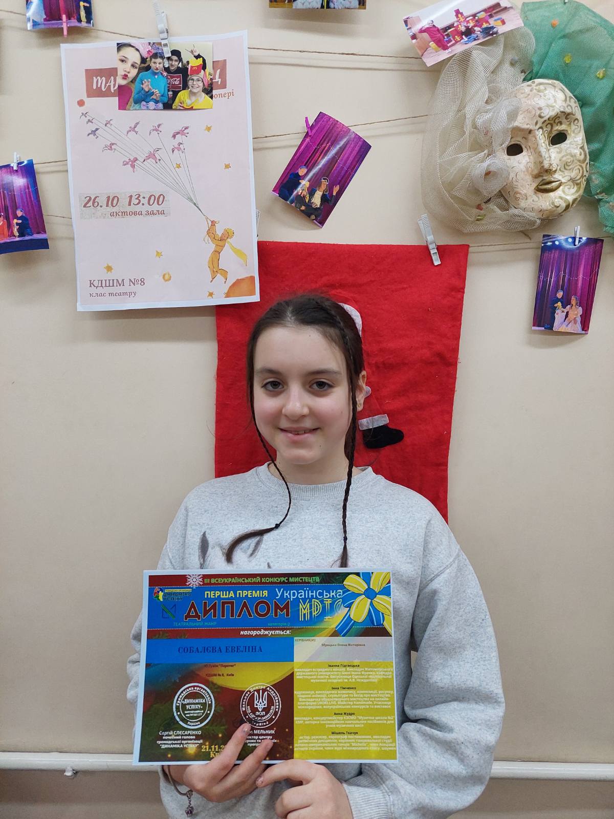 Учні класу театрального мистецтва Київської дитячої школи мистецтв №8 продовжують вражати своїми досягненнями на всеукраїнських сценах. ІІІ Всеукраїнський конкурс мистецтв «УКРАЇНСЬКА МРІЯ» став черговим важливим етапом їхнього творчого розвитку. Виступи наших юних артистів вражають не лише професіоналізмом, але й глибоким розумінням театрального мистецтва, що принесло їм блискучі перемоги.