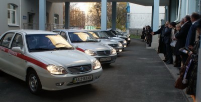 Привітавши зібрання, директор Департаменту охорони здоров’я урочисто передав ключі від першої партії автомобілів та сертифікати на обладнання для амбулаторій директорам Центрів первинної медико-санітарної допомоги № 1, 2 і 3 Святошинського району міста Києва.