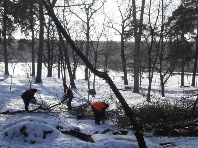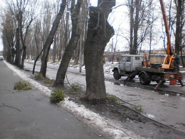Варто відмітити, що більш ніж на 600 деревах було обрізано сухе гілля вручну – на вулицях: Тулузи, Якуба Колоса, Ушакова, Ірпінській, проспекті Леся Курбаса, в парку ім.. Потапова, та на проспекті Перемоги. Зразу ж, після обрізки дерев, згідно агротехнічних вимог, зафарбовано всі живі зрізи.