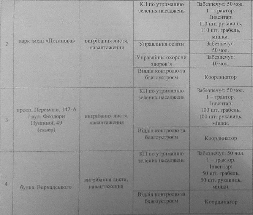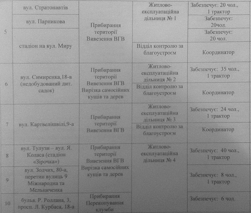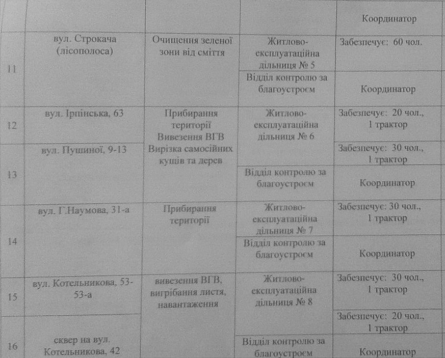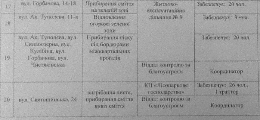 План заходів проведення 2 квітня 2016 року весняного двомісячника з благоустрою, озеленення та поліпшення санітарного стану на території Святошинського району