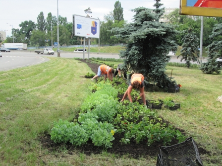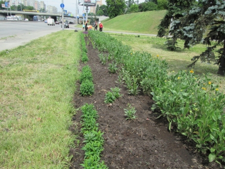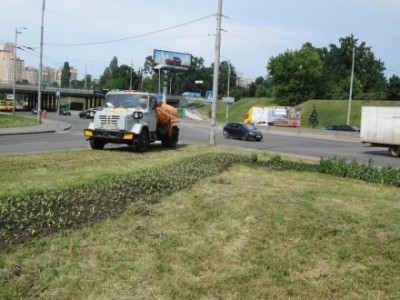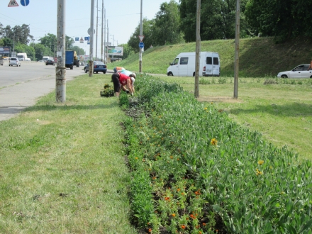 Планова посадка квітів на транспортній розв’язці на перехресті Кільцевої дороги та проспекту Перемоги