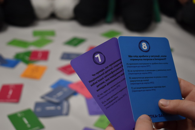 Саме завдяки грі діти поринули у невимушену атмосферу, легше йшли на контакт і активніше відповідали на питання. «Коло безпеки» - містить в собі п’ять кіл, а саме: «Загальні поняття про насильство», «Дитина і булінг», «Дитина і насильство в мережі - Інтернет», «Дитина і домашнє насильство», «Дитина і незнайомці». Адже безпосередньо в форматі гри діти запам'ятовують та сприймають інформацію якнайкраще.
