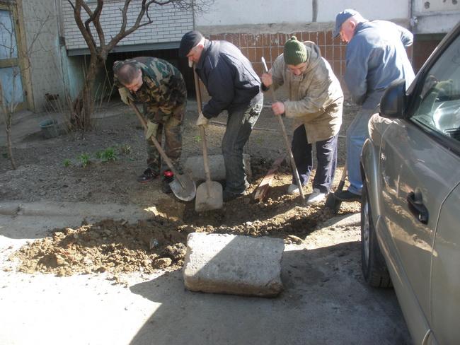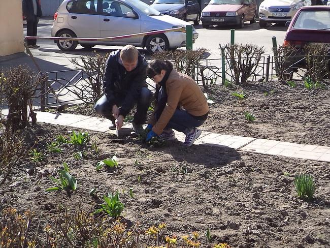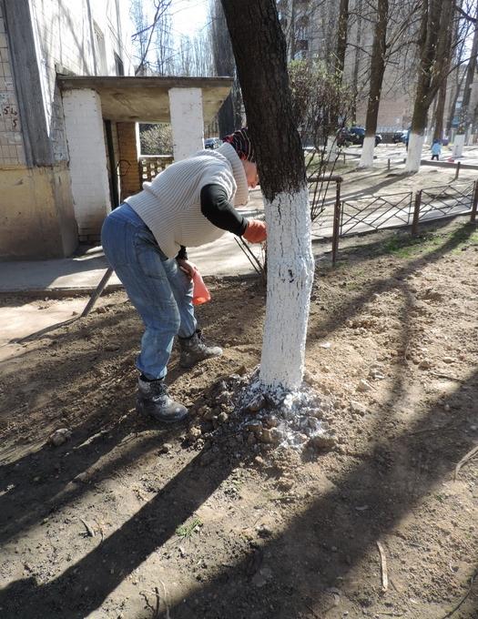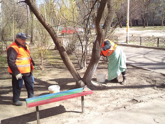 Робітники з комплексного прибирання та утримання будинків з прилеглими територіями Раїса Хоменко, Надія Бриль, Тетяна Хиля та Катерина Юрчук провели побілку дерев на своїх дільницях. Виробнича бригада під керівництвом майстра Володимира Рабіновича встановила бордюри пішохідних доріжок після нещодавно проведених робіт на зовнішніх інженерно-комунікаційних мережах.