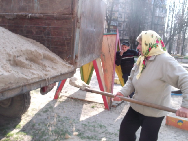Робітники з комплексного прибирання та утримання будинків з прилеглими територіями КП «РЕО-5» завезли свіжий пісок на дитячі ігрові майданчики за адресами вулиця Верховинця, 10, вулиця Рикова, 7, вулиця Гната Юри, 1/11, проспект Героїв Космосу, 7.