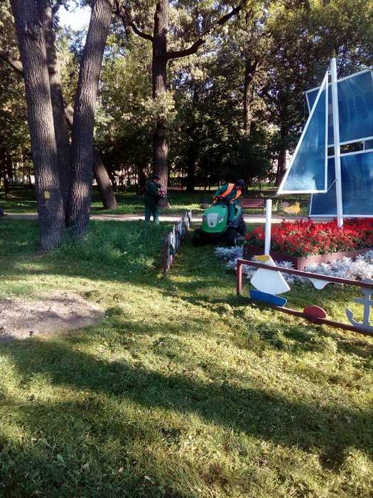 Працівники КП УЗН Святошинського району докладають максимум зусиль, щоб газони були доглянуті і наразі провели покіс газонів у сквері між вулицями Краснова та Семашка.