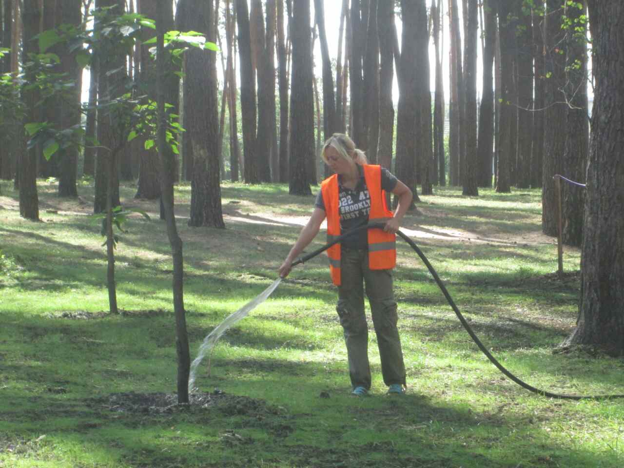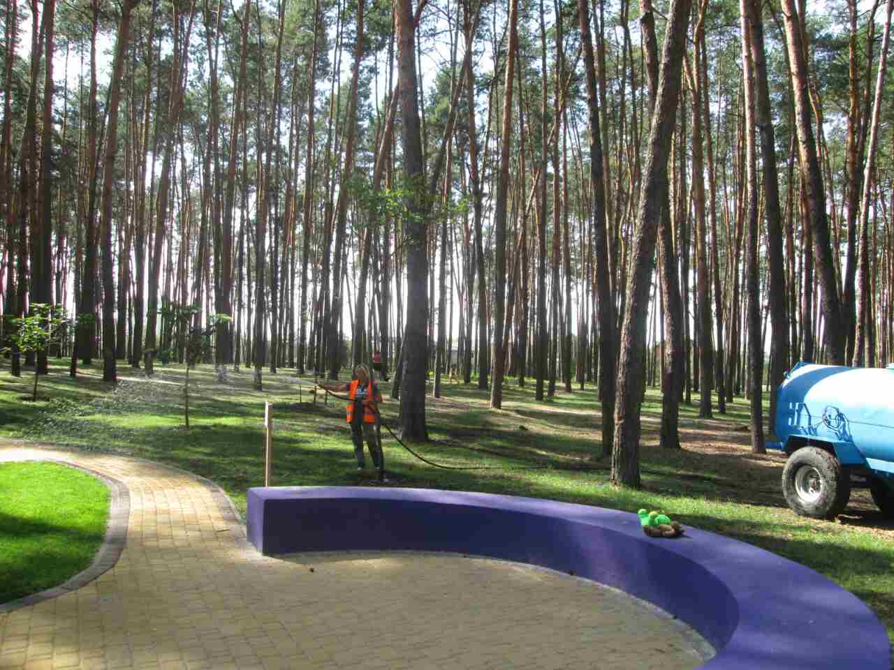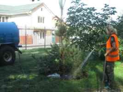 Працівники КП УЗН сумлінно доглядають за зеленими насадженнями і продовжують полив молодих дерев та кущів на балансових територіях.