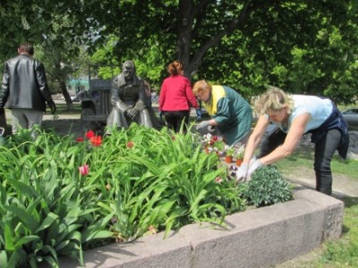 Працівники комунального підприємства по утриманню зелених насаджень Святошинського району постійно піклуються про території біля пам’ятників та пам’ятних знаків, які знаходяться на балансових територіях. Зокрема, у четвер, 4 травня, чергові роботи по упорядкуванню території (покіс газонів, посадка квітів, чищення доріжок від трави) працівники зеленого господарства провели у сквері на розі вулиць Симиренка та Григоровича-Барського біля пам’ятного знака Героям-партизанам, на вулиці Симиренка біля пам’ятника Воїнам-автомобілістам, а також біля пам’ятного знака на місці першої лінії оборони м. Києва, що на 19-му км Житомирського шосе.