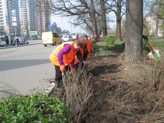 В скверах та парках, на бульварах та проспектах Святошинського району розкинулись як поодинокі декоративні кущі, так і групові їх посадки, а ще з кущів створені живоплоти. Декілька років тому, щоб відокремити зони відпочинку і пішохідні доріжки та декоративно оформити парк на вулиці Феодори Пушиної, працівники КП УЗН посадили живу огорожу із бирючини, за якою постійно належно доглядають. Зокрема, 12 квітня, зі сторони проспекту Перемоги, працівники зеленого господарства провели відновлення живої огорожі в місцях де вона була знищена.