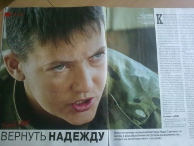 Стаття «Повернути Надію» розповідає про Старшого лейтенанта, штурмана-оператора вертольота Мі-24, яка в 33 річному віці пішла воювати на Схід за власним бажанням. Жінка – офіцер, яка служить в українській армії понад десять років бере відпустку за власний рахунок та купує квиток на поїзд до Луганська. «Мамо, не хвилюйся! Все! Махнула рукою, посміхнулась і …. зачинила двері», - розповідає 76-річна вдова, Марія Савченко. На одному з допитів Надія скаже: «… чому я проводжу свою відпустку тут? Тому, що за 23 роки розвалу армії …. ми дожились до того, що воювати повинен народ. У нас не вистачає ресурсу армії, навиків та патріотизму. Хто, якщо не я?»