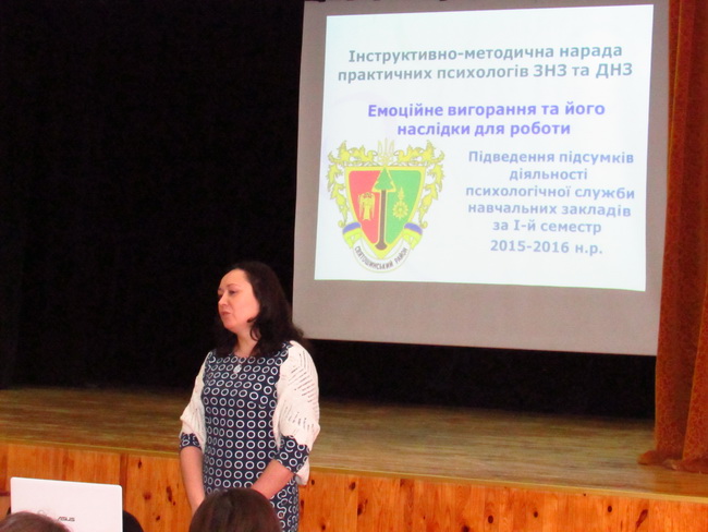 Окремо методист зупинилася на питанні емоційнного вигорання педагогічних працівників та його наслідків для роботи і ролі практичних психологів по усуненню цього явища.